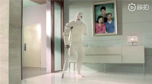主人公形象也从一个“拆弹砖家”变成了裹满绷带的重伤患者,之后又变成电饭锅、轮胎,甚至只剩一只手回家的场景……最后,广告词出来了:“为什么爸妈总能认出我?不管我变成什么样子,XXX智能锁,指纹识别,一键开门。”
